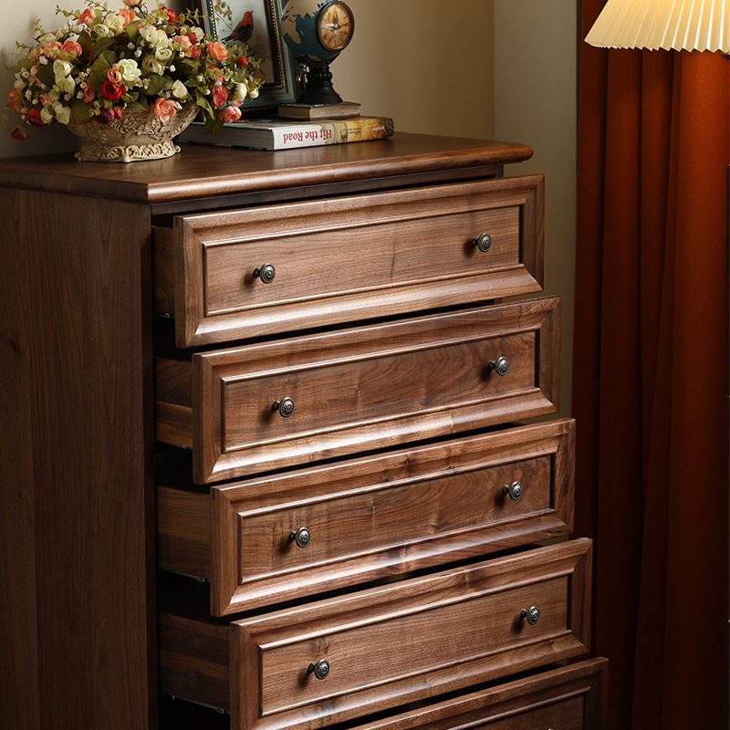 美式全实木五斗柜黑胡桃木斗橱中古收纳储物柜现代简约客厅餐家具