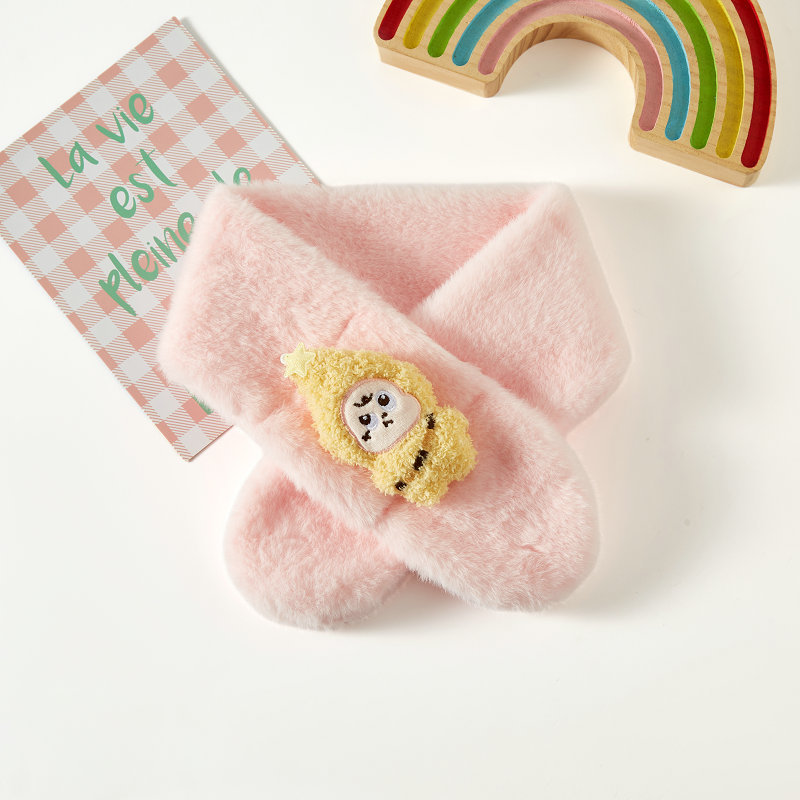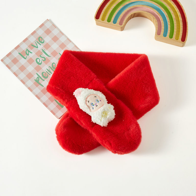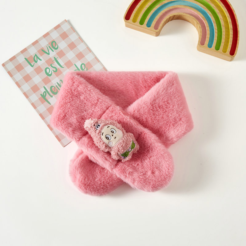 冬季儿童保暖毛绒围巾男女童加厚防风宝宝围脖卡通可爱仿兔毛围巾