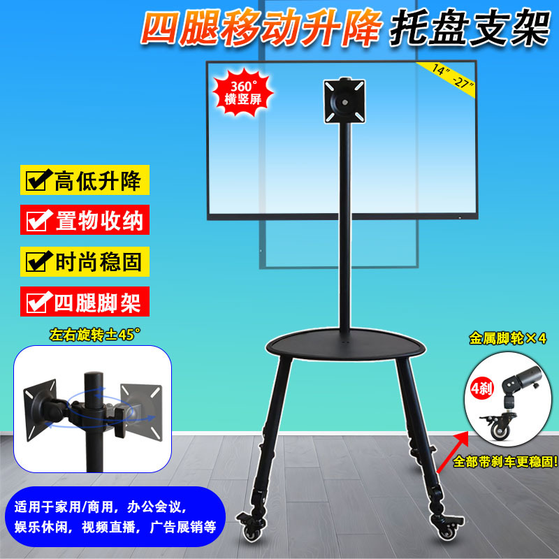 多功能电脑笔记本四腿移动升降托盘支架 360°万向旋转显示屏支架