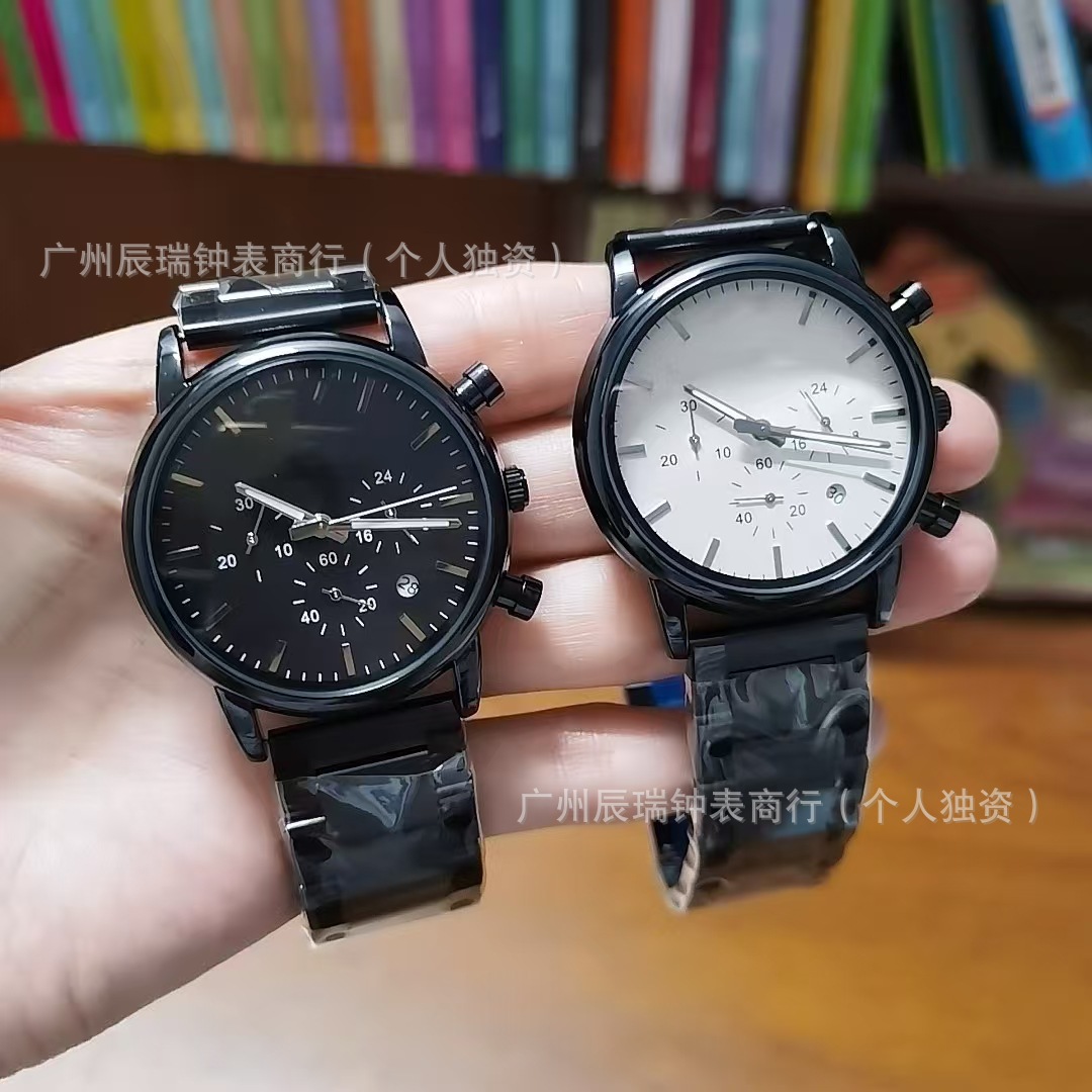 微商爆款阿玛家简约男表多功能石英六针小秒商务钢带男士手表批发