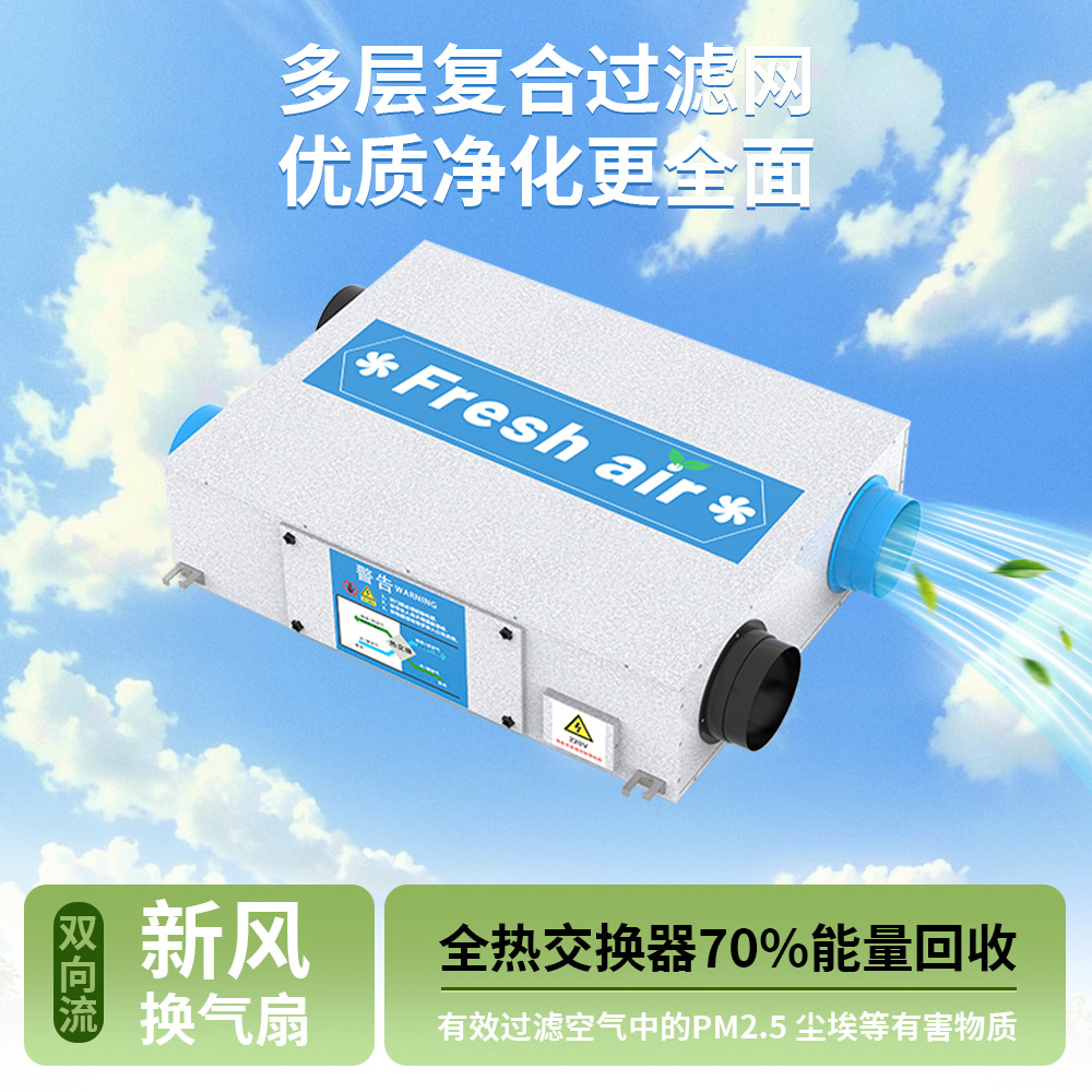 全热交换新风系统家用全屋净化新风机双向流送排风新风换气机商用