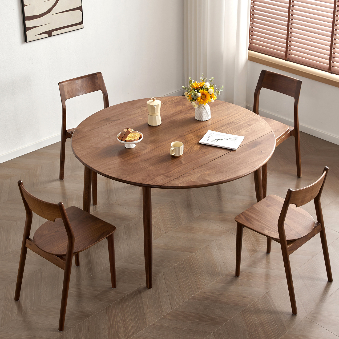 北美黑胡桃木全实木折叠餐桌简约樱桃木原木多功能家用折叠吃饭桌