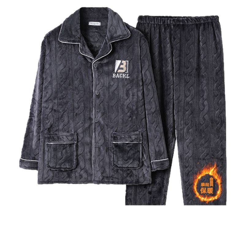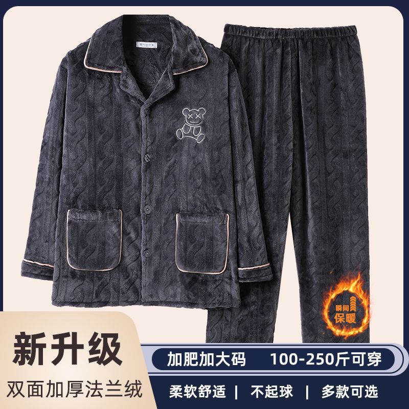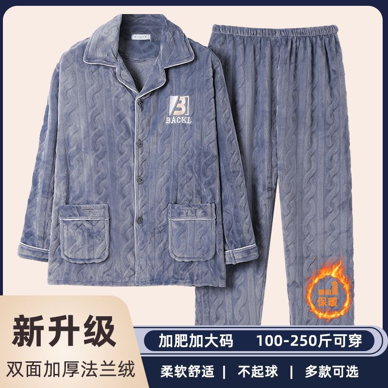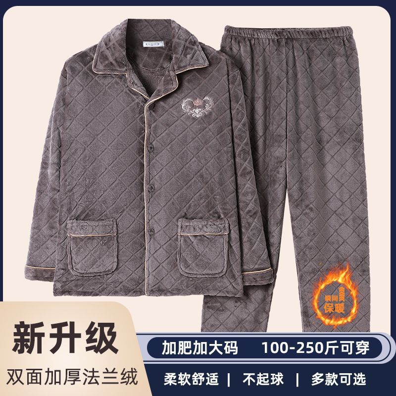 特大码男士睡衣男秋冬款加厚珊瑚绒胖子中年法兰绒加肥加大斤包邮