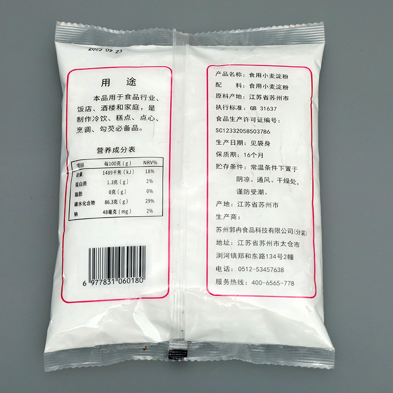 原料与配料 | 小麦淀粉 | | 等级 | 合格 |