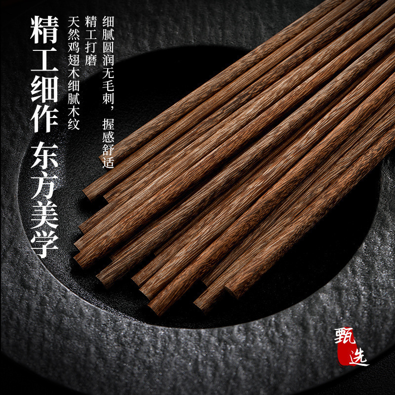 UYIKU鸡翅木筷10双装无漆无蜡家用无漆无蜡 餐厅酒店火锅筷子批发