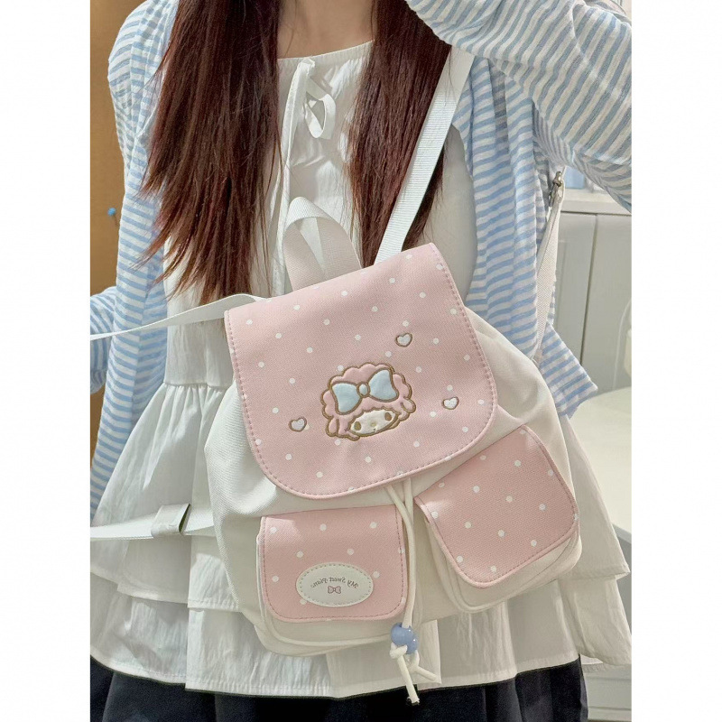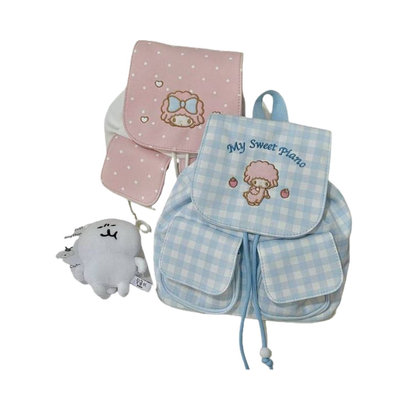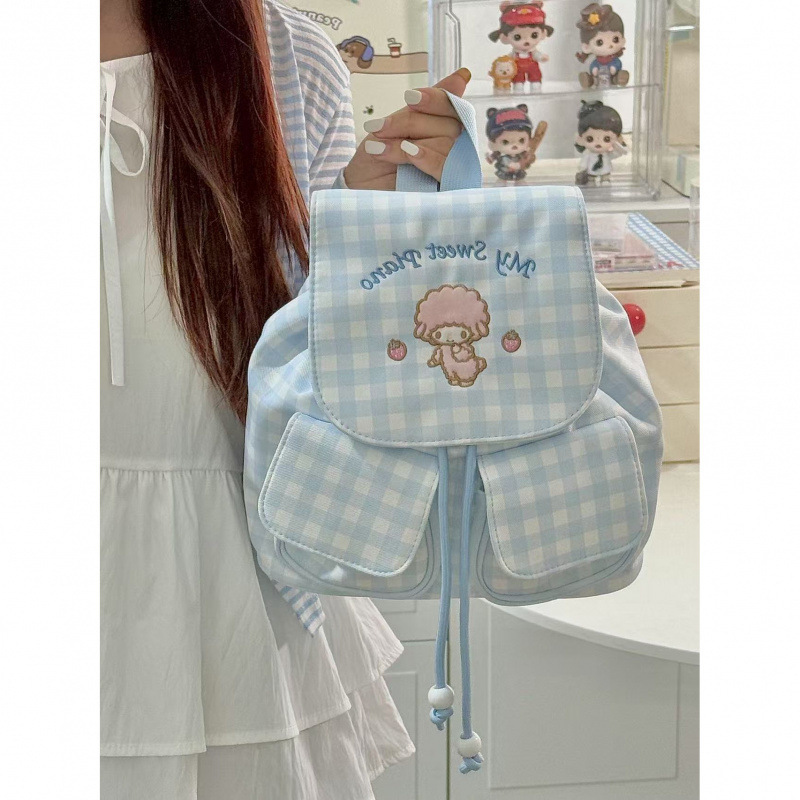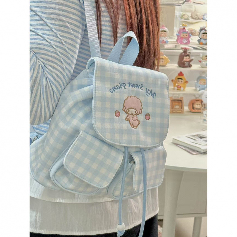 韩系风高颜值刺绣小羊双肩包初高中学生格子书包外出百搭背包包邮