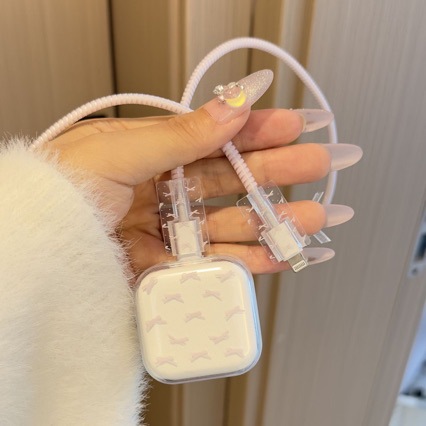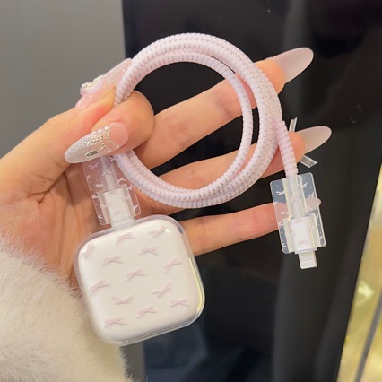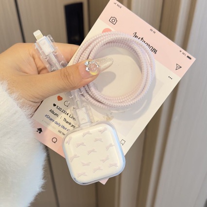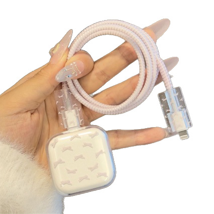 粉蝴蝶苹果40W 17数据线保护套iPhone17pro充电器头保护壳充电线