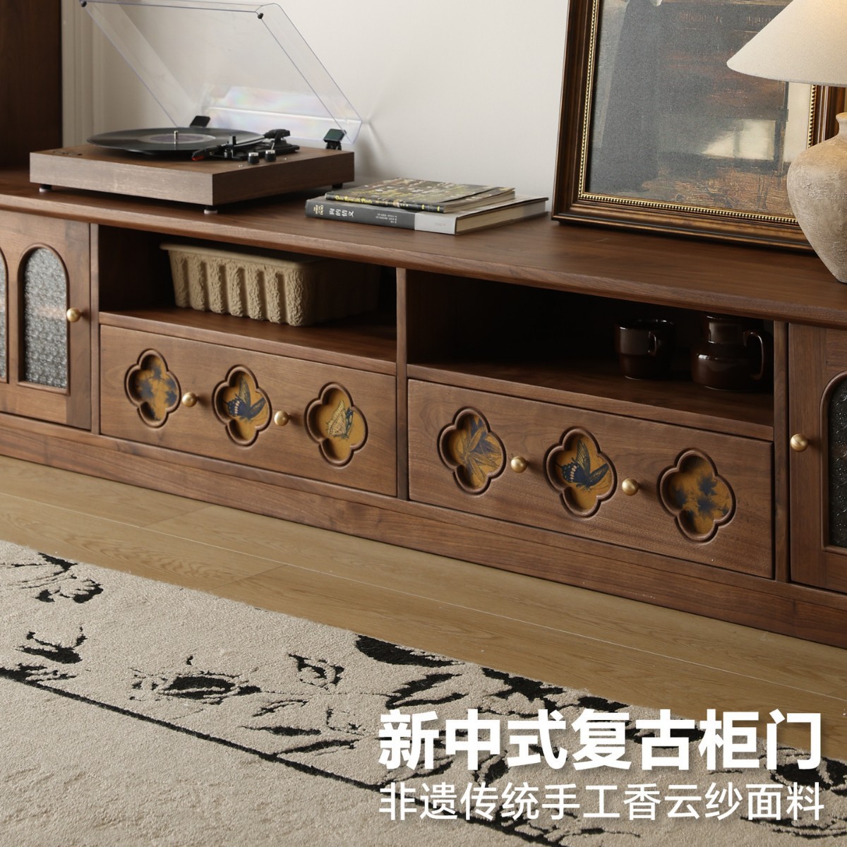 宋式美学北美黑胡桃木电视柜法式客厅收纳储物柜一体实木电视机柜