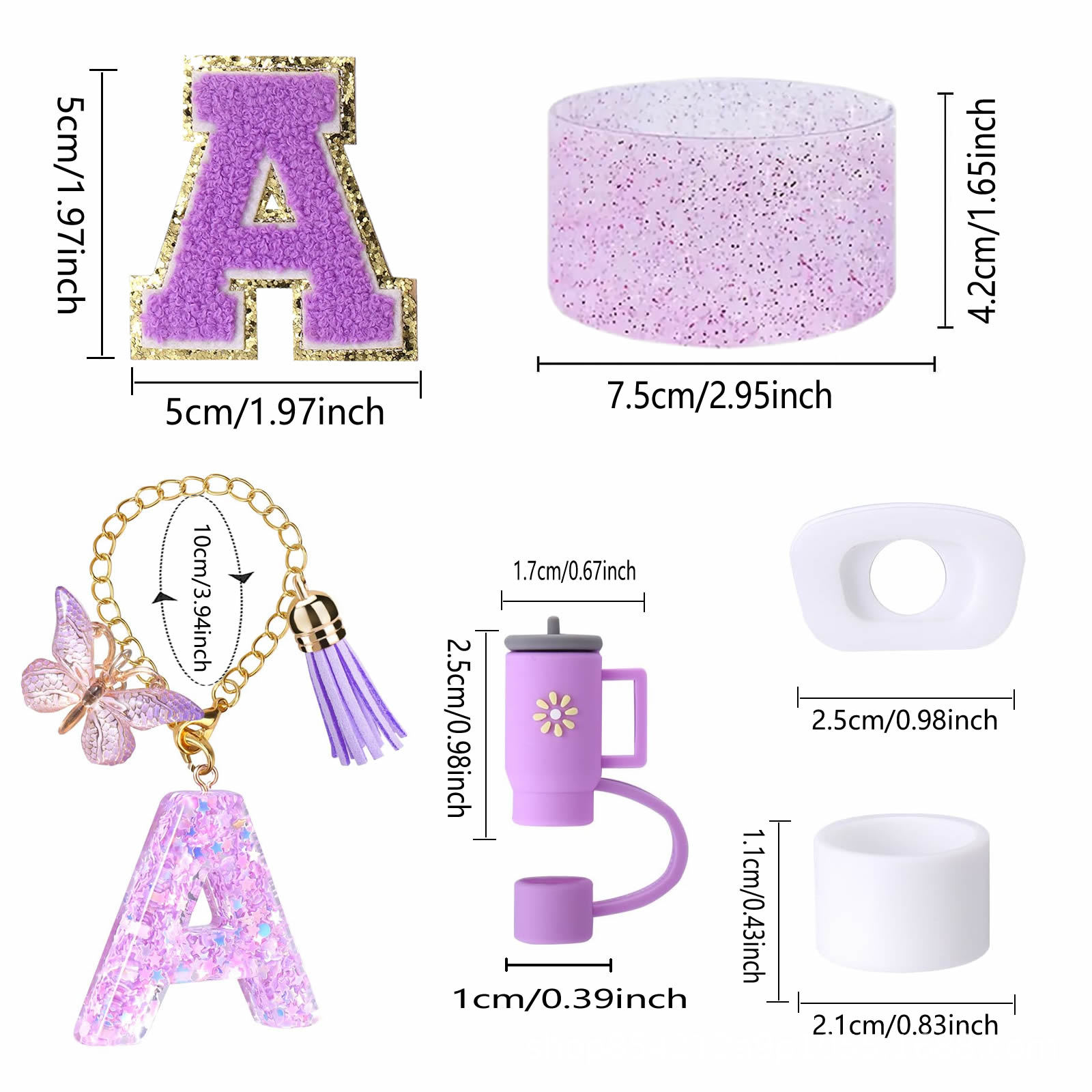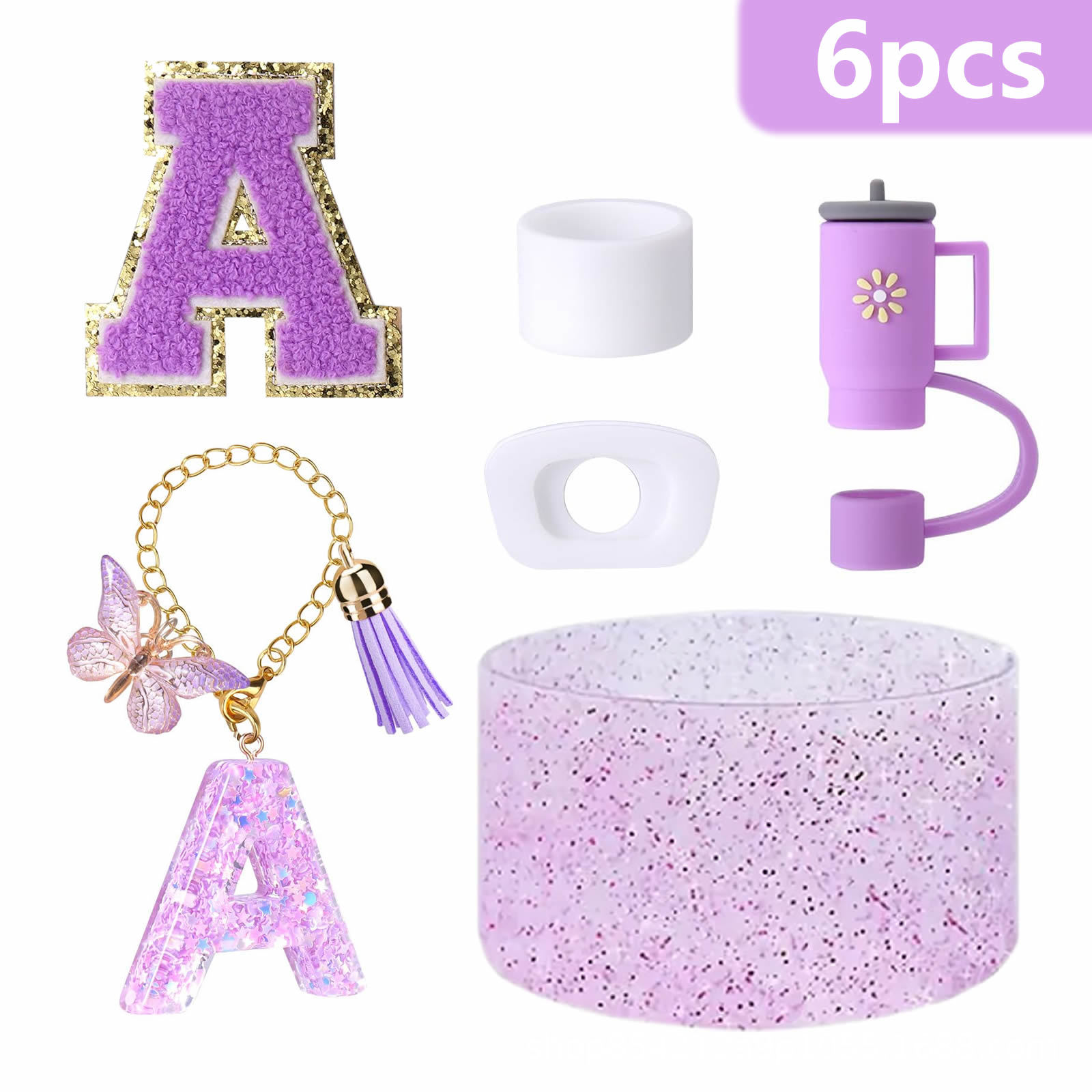 跨境现货新款史丹利杯彩色蝴蝶系列字母贴吸管帽软胶闪亮可爱杯套