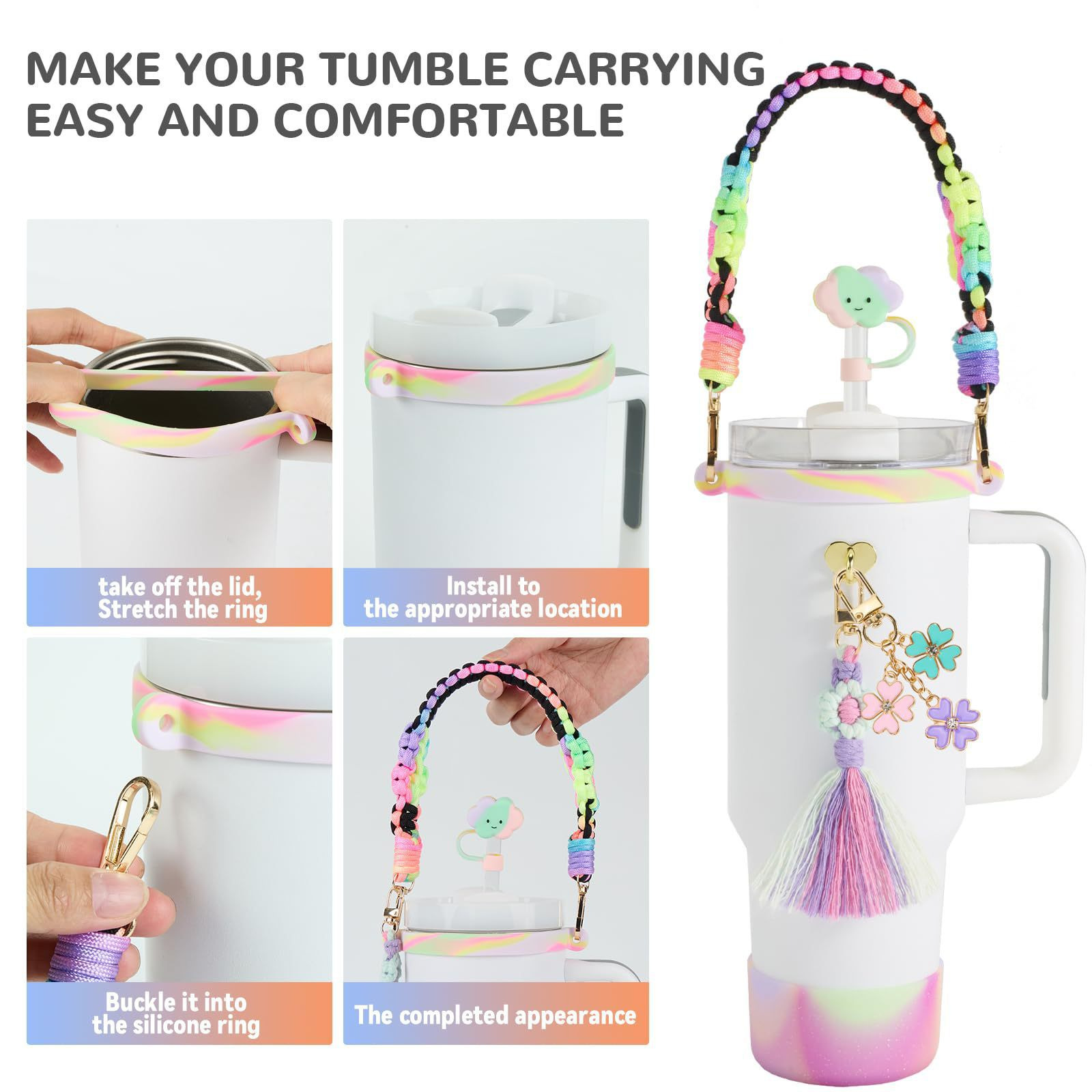 斯坦利杯雏菊绳编流苏四叶草杯链硅胶杯托云朵吸管帽含吸管