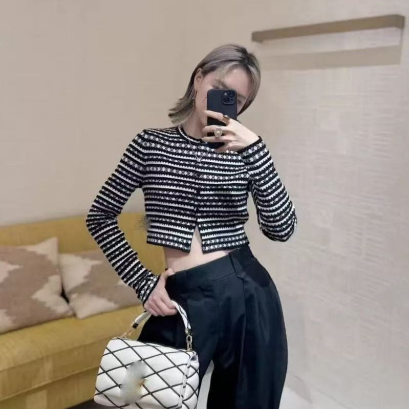 新款上市驴家秋冬设计感辣妹短款修身露脐显瘦长袖针织开衫上衣女