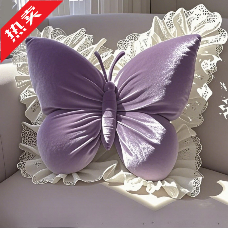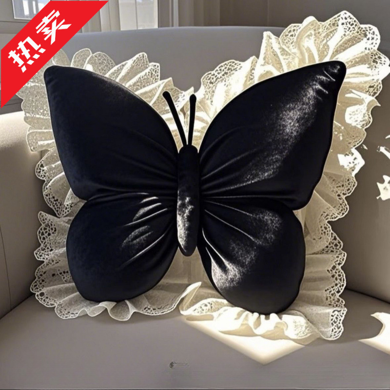 新款公主ins蝴蝶办公室靠枕卧室蕾丝车载沙发靠垫床上家居特大号