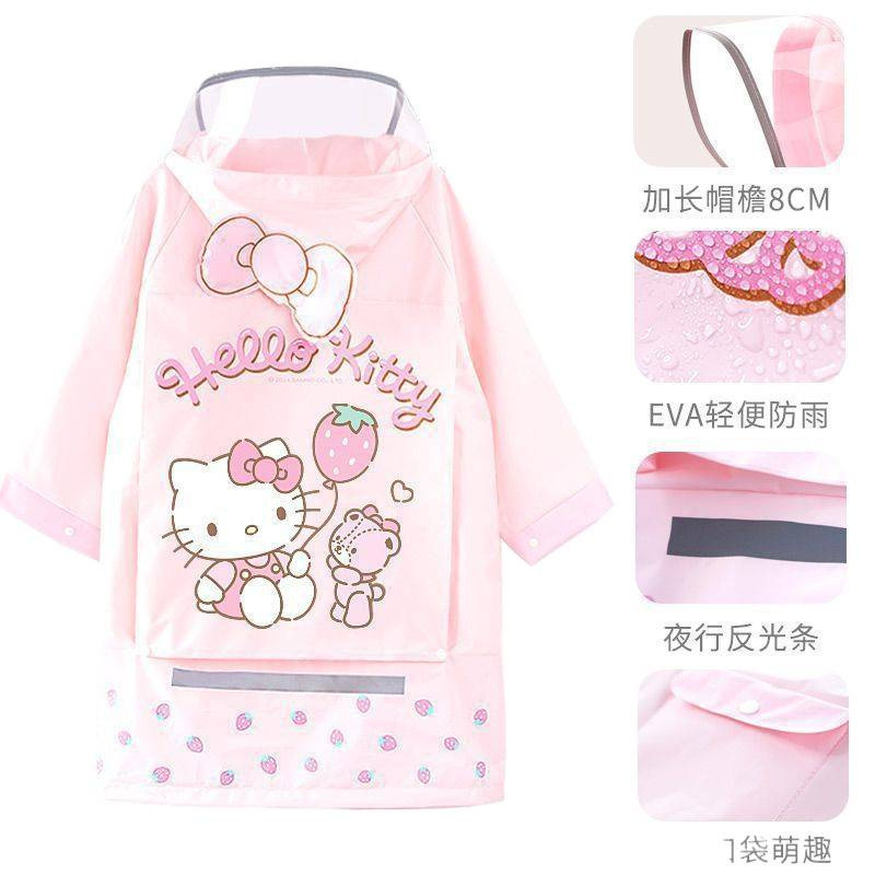 KT猫儿童雨衣带书包位卡通防暴雨4-15岁女童宝宝雨衣高品质小学生