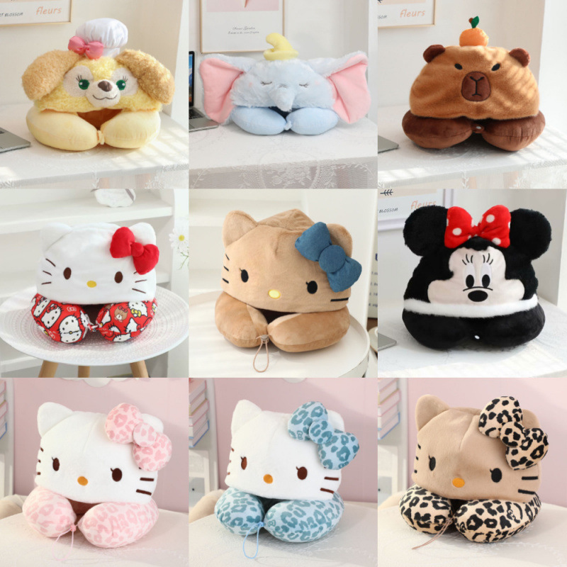 可爱日系卡通动物连帽遮光靠枕坐车旅行睡觉神器脖子护颈枕U型枕
