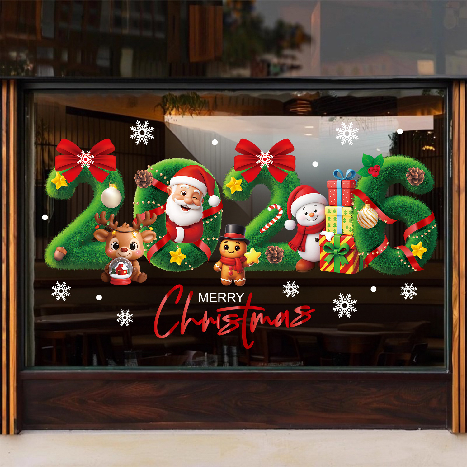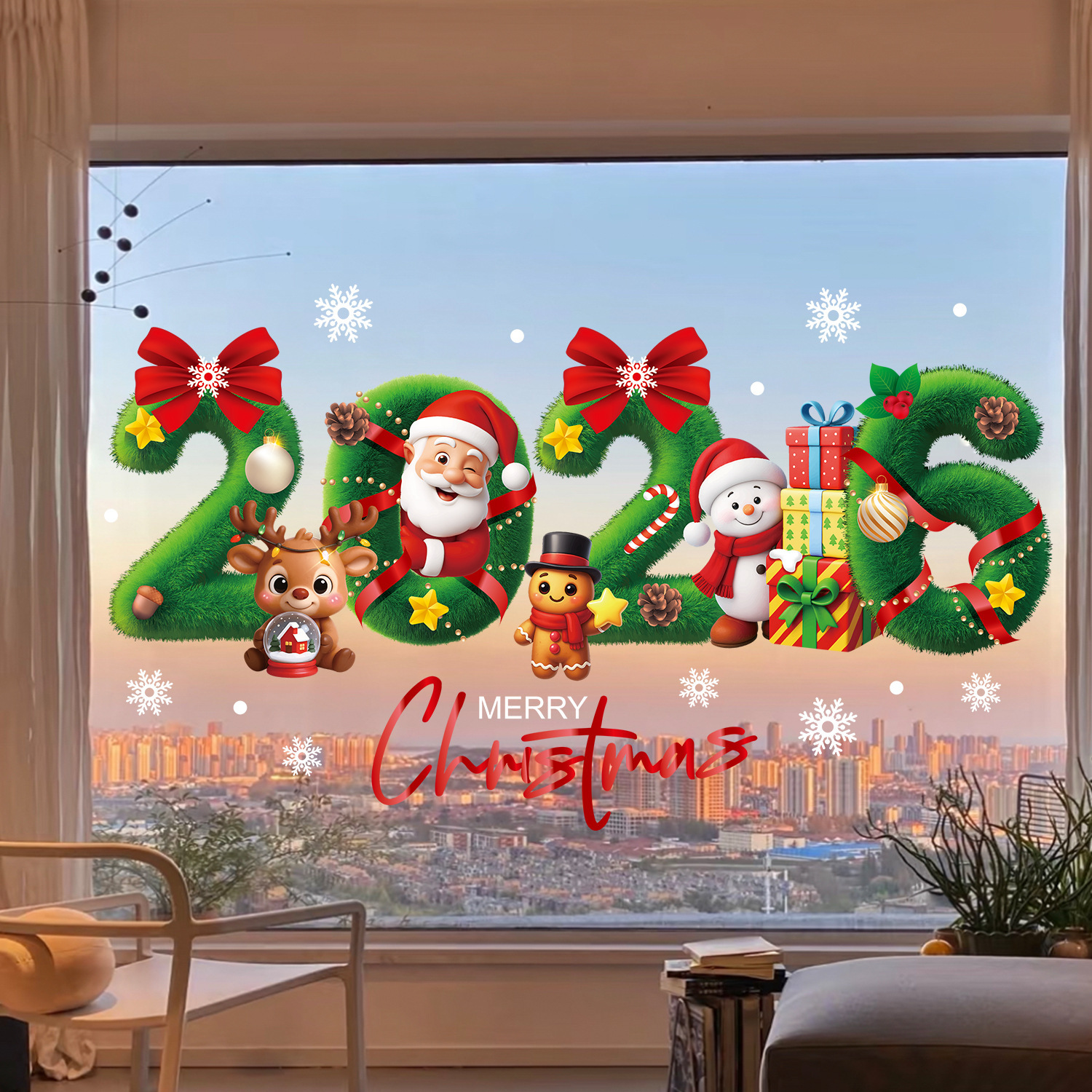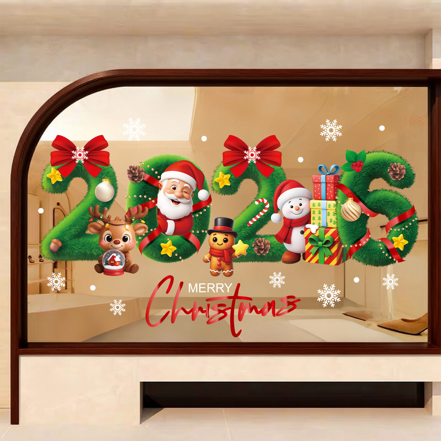 跨境新年装饰品圣诞节创意2026静电贴圣诞派对用品雪人礼物盒窗贴