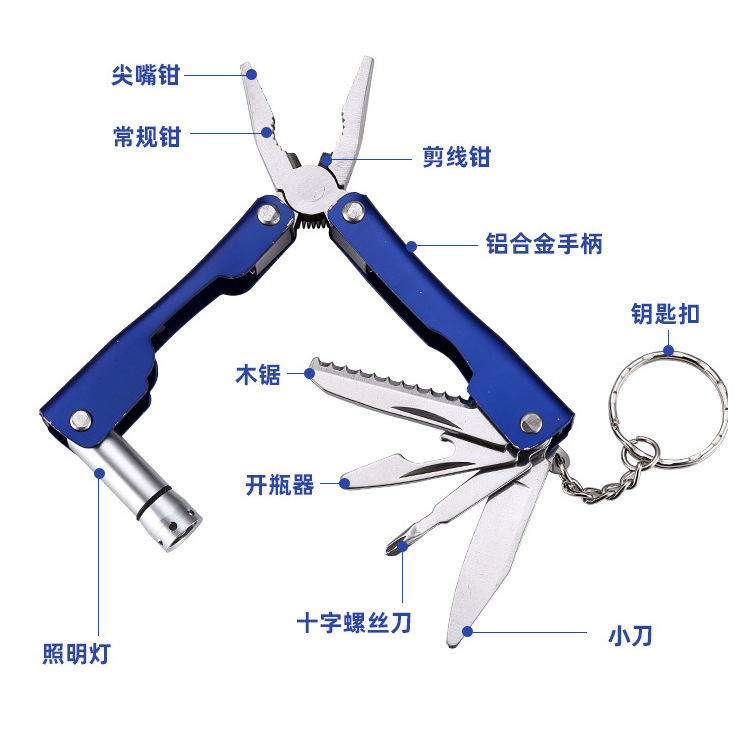 迷你折叠钳子小号带灯钳子 户外用品批发 多功能钳子 多用工具钳