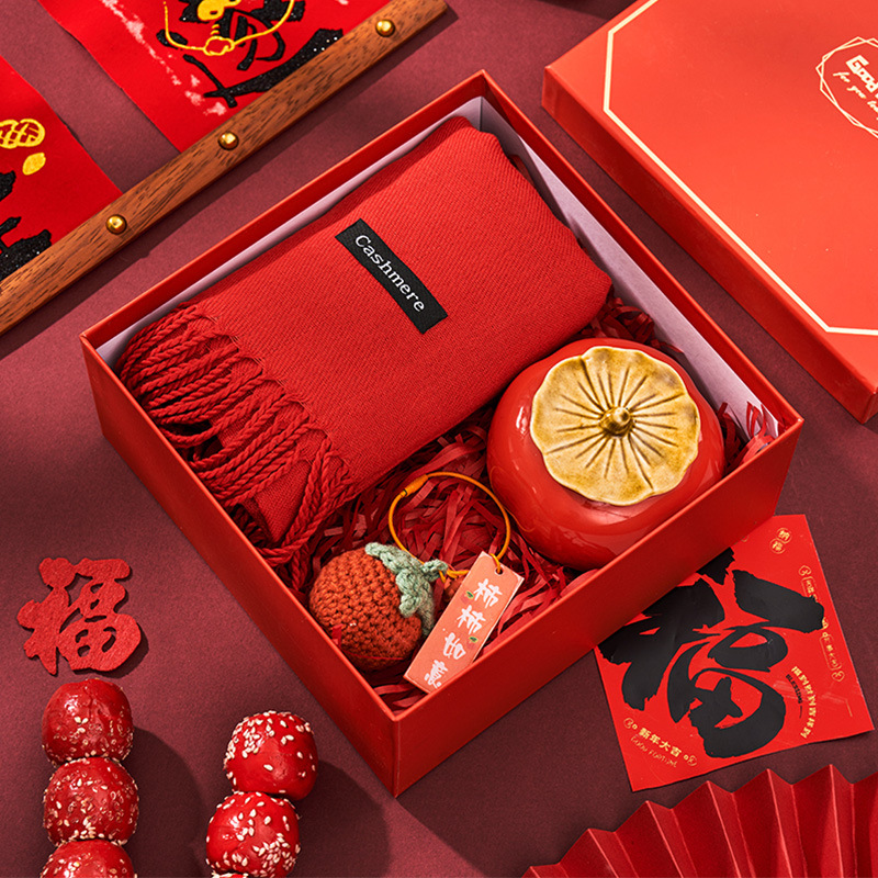 颜色 | 红围巾+红八角杯+红小礼盒 | | 颜色 | 红围巾+红柿子罐+柿柿如意+红小礼盒 |