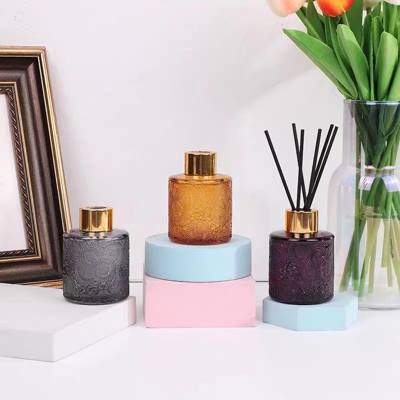 彩色无火香薰瓶DIY藤条干花挥发浮雕香薰香氛扩香分装玻璃瓶