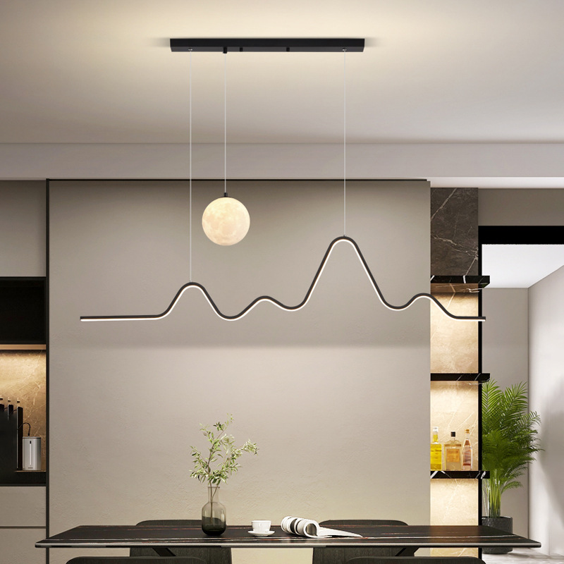 灯光颜色 | 黑色124cm波浪月球餐吊+无极调光 | | 灯光颜色 | 黑色124cm波浪月球餐吊+支持天猫精灵 |