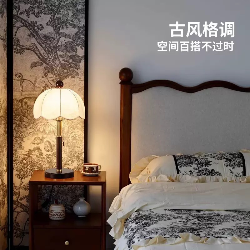 法式中古台LED灯卧室床头氛围灯复古布艺客厅拉链开关装饰实木灯