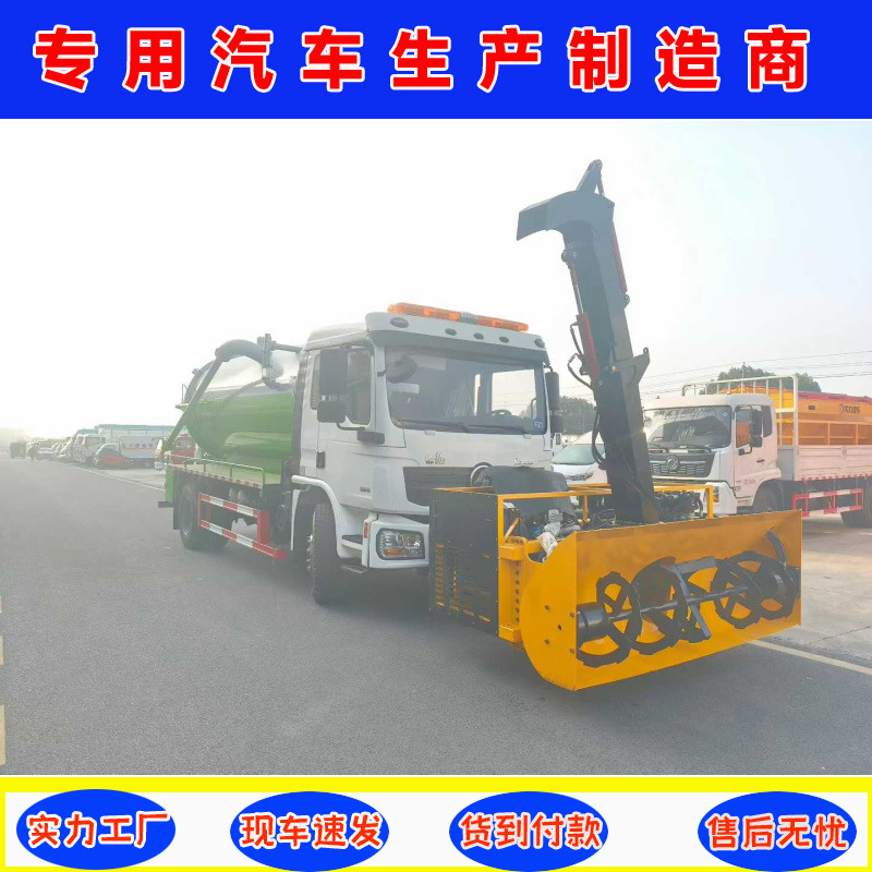 加装自带动力抛雪机 陕汽牌14方单桥吸污车 多功能真空吸污车