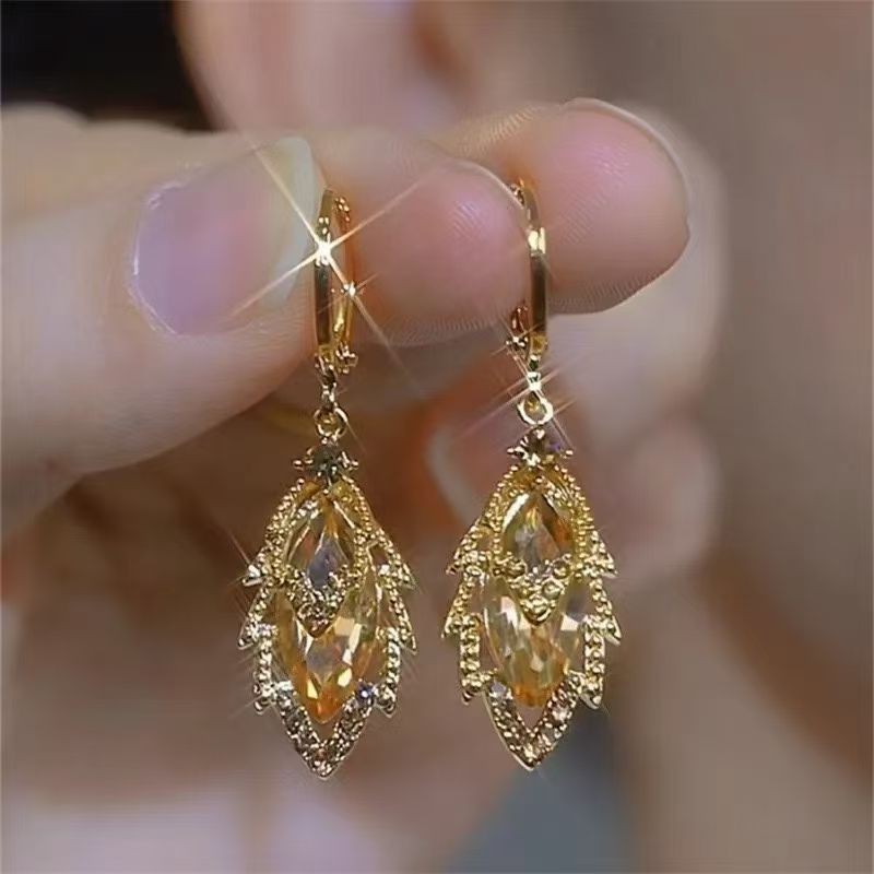新款精致百搭潮流镶钻树叶流苏耳环轻奢高级感重工时尚气质耳饰