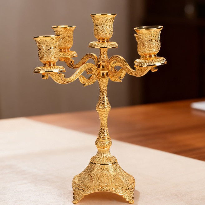 欧式金属烛台三头蜡烛台家用客厅烛光晚餐轻奢复古简约摆件家居