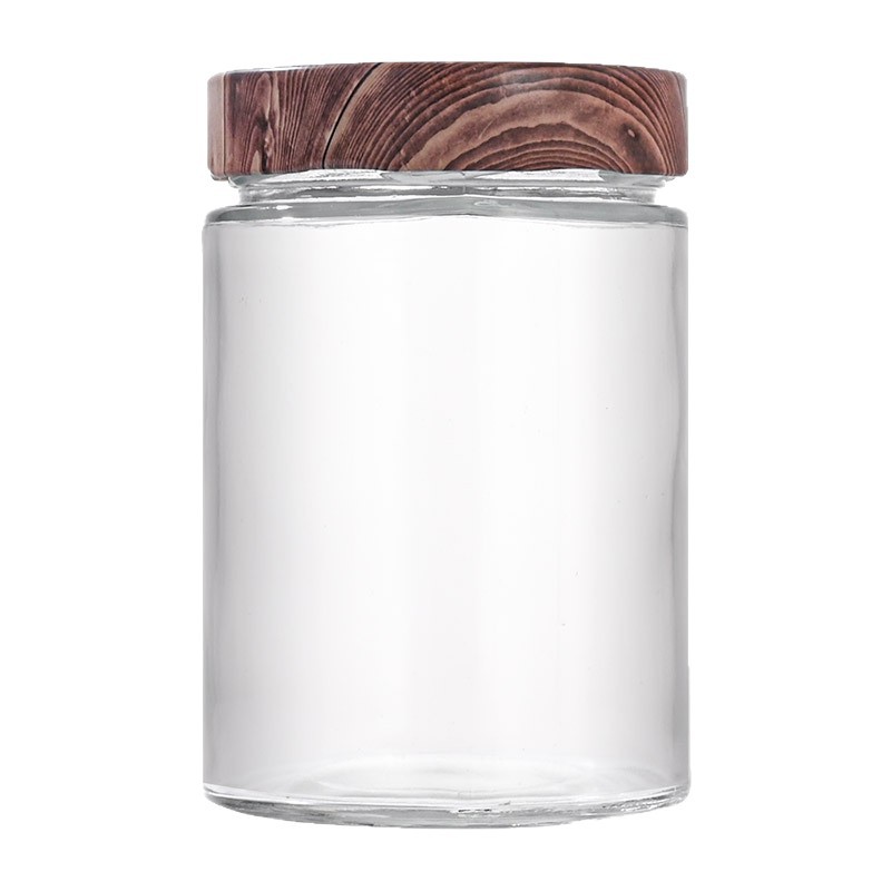 新款木纹盖透明玻璃密封罐厨房收纳罐酱菜瓶罐头瓶杂粮干货储物罐