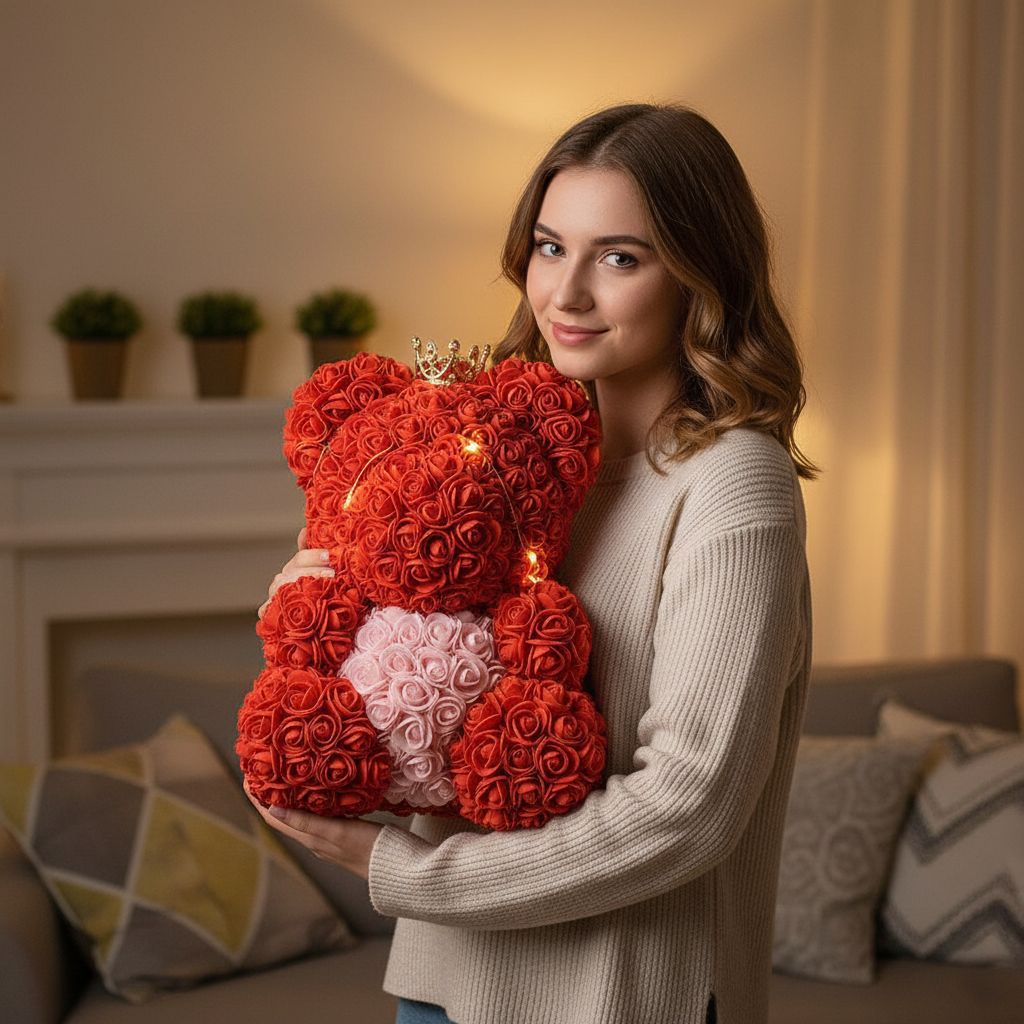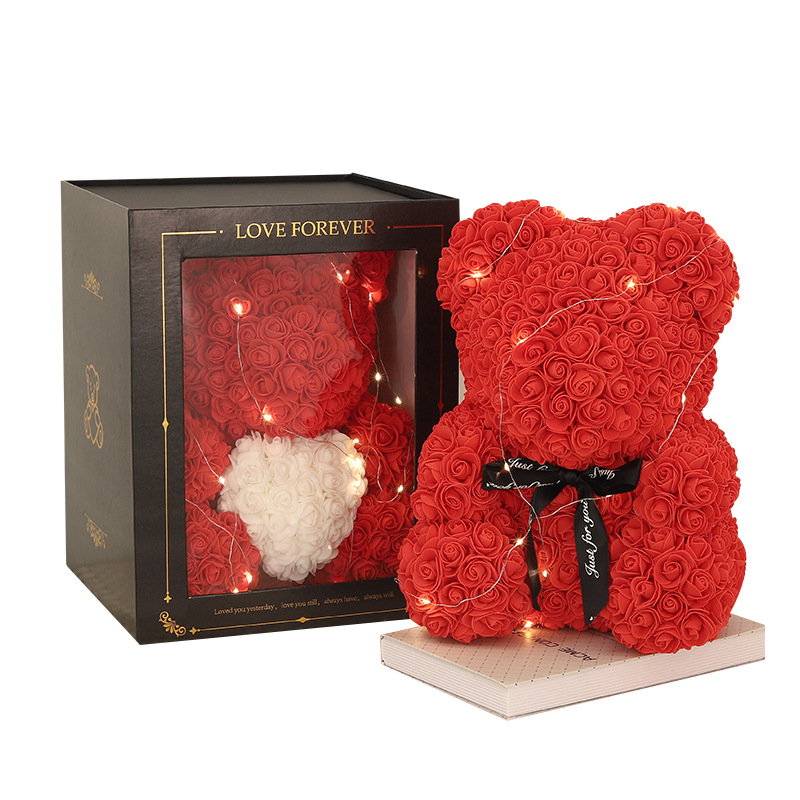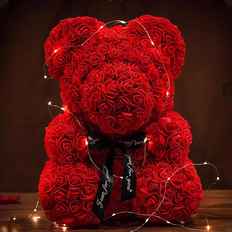 玫瑰熊花熊泡沫小熊熊情人节花520七夕玫瑰礼物花店pe抱抱熊