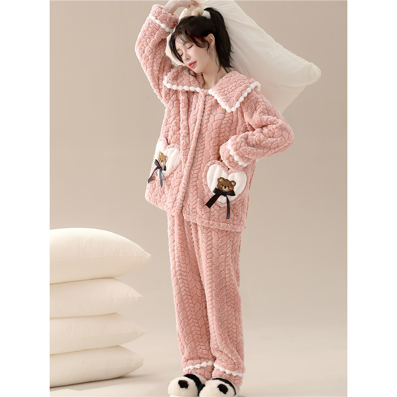 秋冬季新款5A抗菌法兰绒睡衣女士可爱可爱甜美秋冬天可外穿家居服