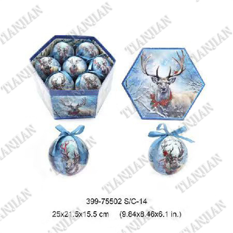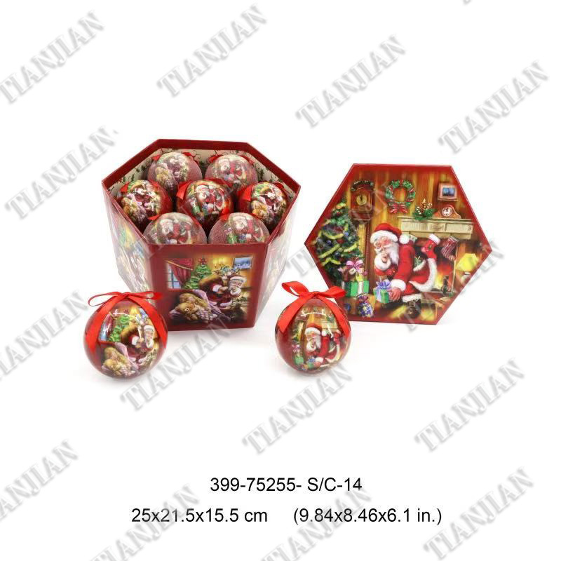 跨境专供圣诞节装饰电镀塑料球彩绘亚光圣诞球礼品套盒圣诞树喜庆