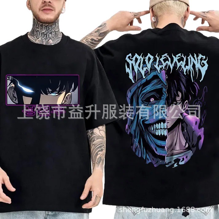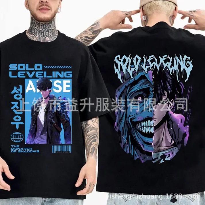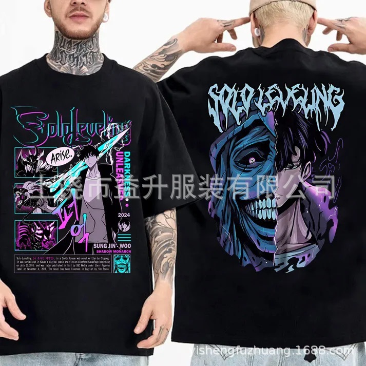 跨境时尚新款我独自升级上衣印花动漫中性款2025休闲宽松短袖T恤