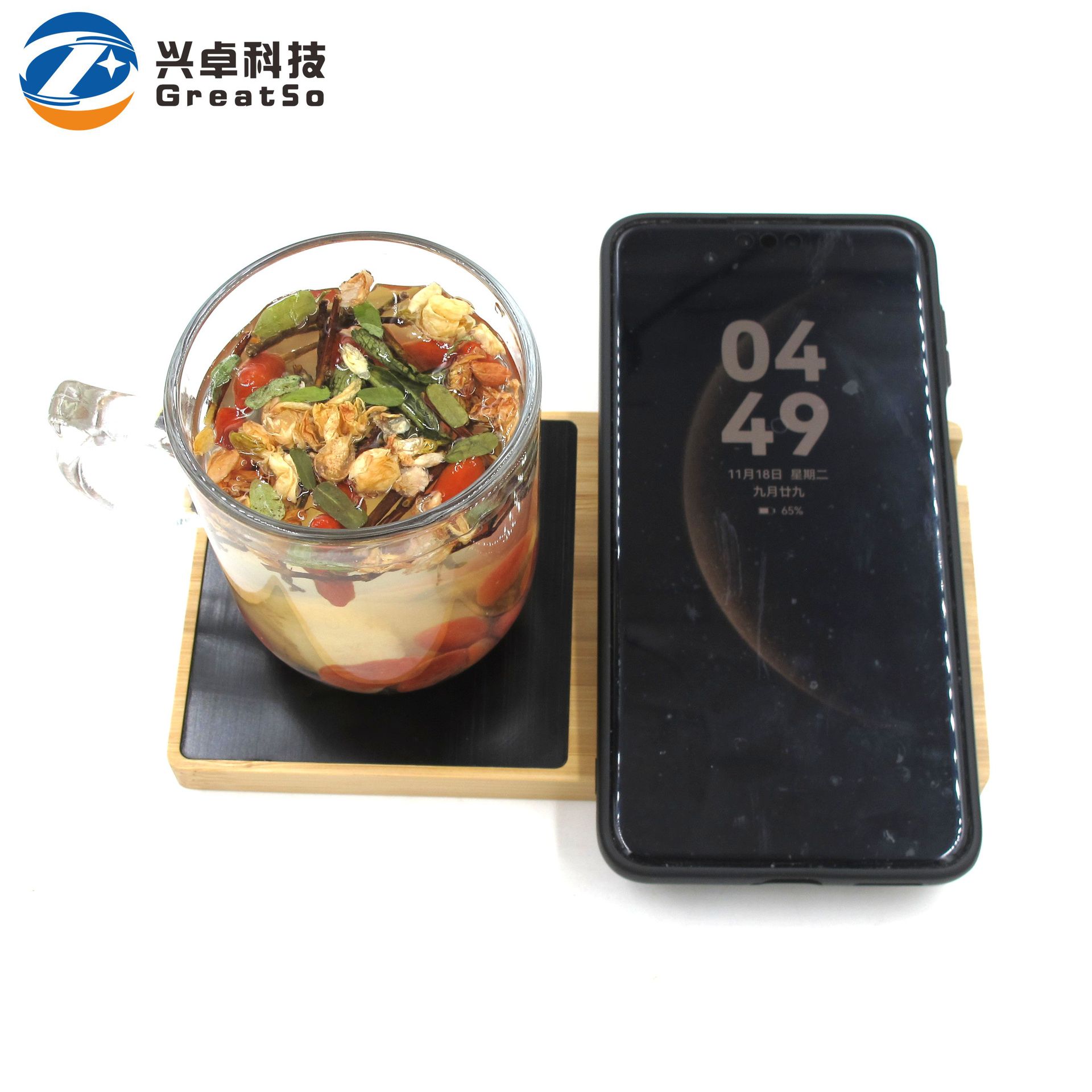 多功能竹子无线充定制新款竹子发热盘保温杯垫无线充