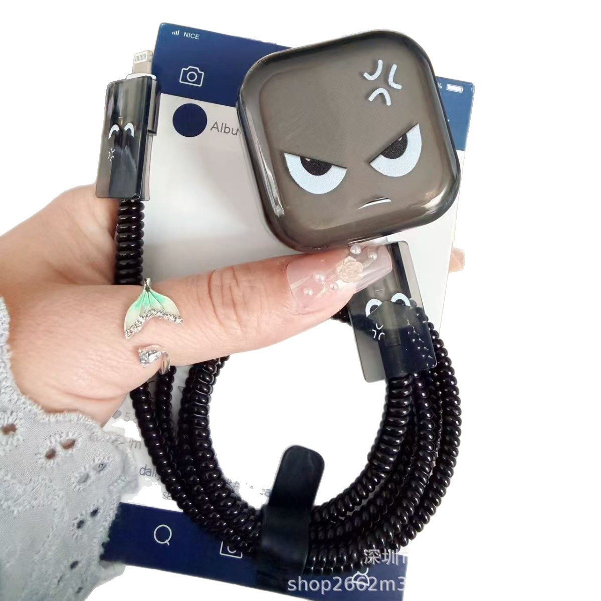 适配苹果40W【奶凶表情】保护套+保护绳+咬线器