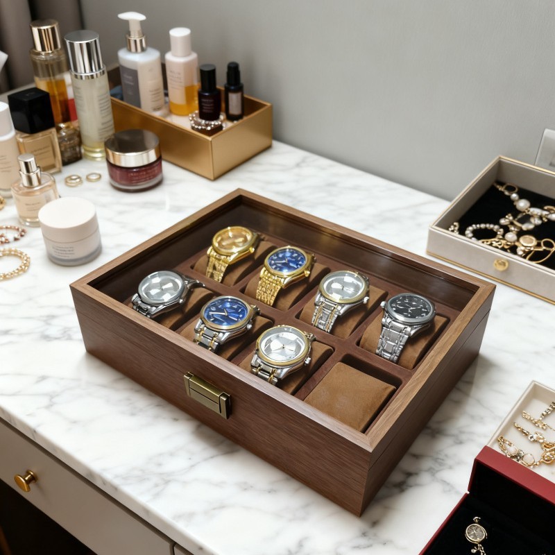 【直播间18号】高档精致木纹PU皮革手表收纳盒首饰腕表收藏展示盒