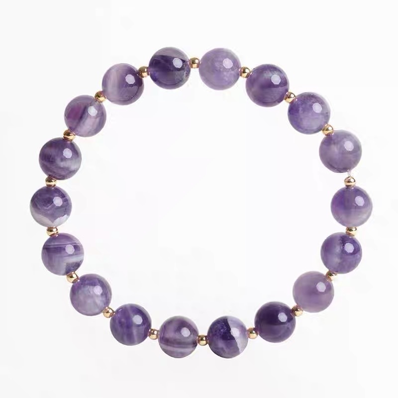 | 颜色 | 紫水晶+镀晶珠手链6mm(款式3) 紫水晶 | 颜色 | 紫水晶+镀金珠手串6mm 紫水晶 |