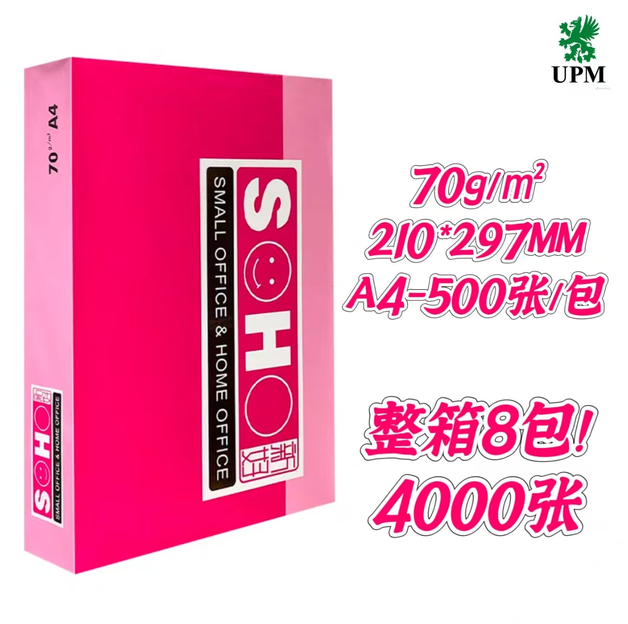 是否进口 | 否 | | 颜色 | UPM粉新好A4/70g/8包/4000张 |
