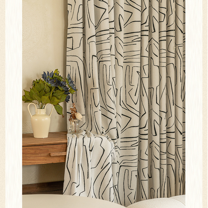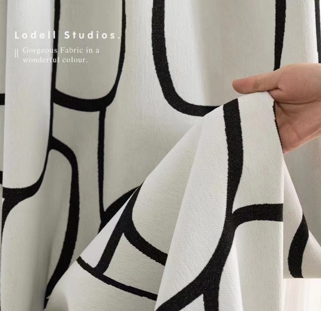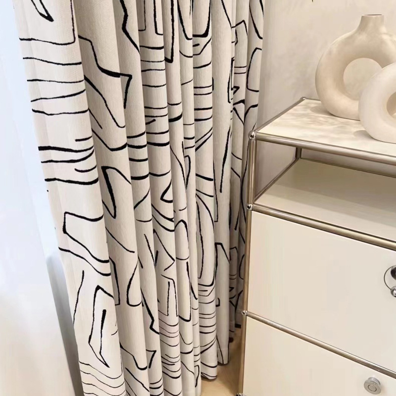 抽象法式艺术曲线条纹雪尼尔黑白提花卧室客厅艺术空间遮光窗帘布