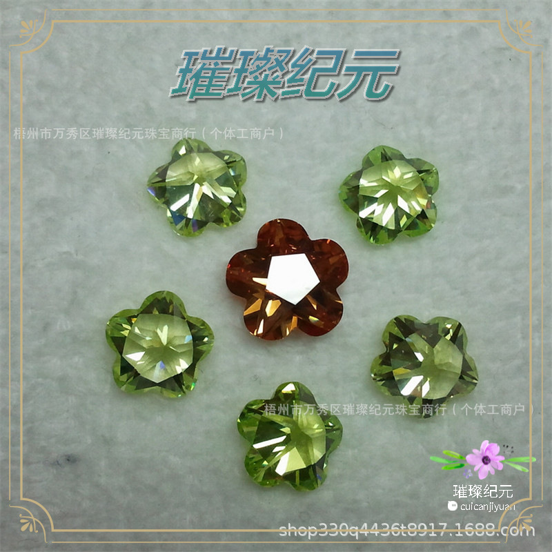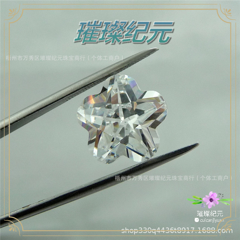 梧州5A梅花形彩色锆石裸石合成尖底五角形人造宝石戒面饰品主石