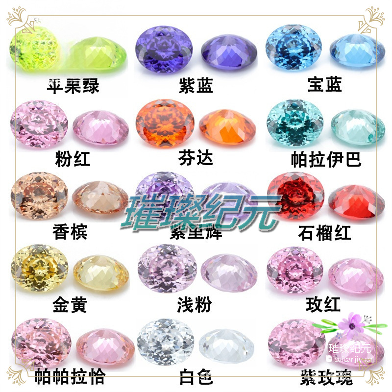 梧州厂家 5A宝石蛋形鸟巢切高碳彩色锆石裸石椭圆形百切戒指吊坠