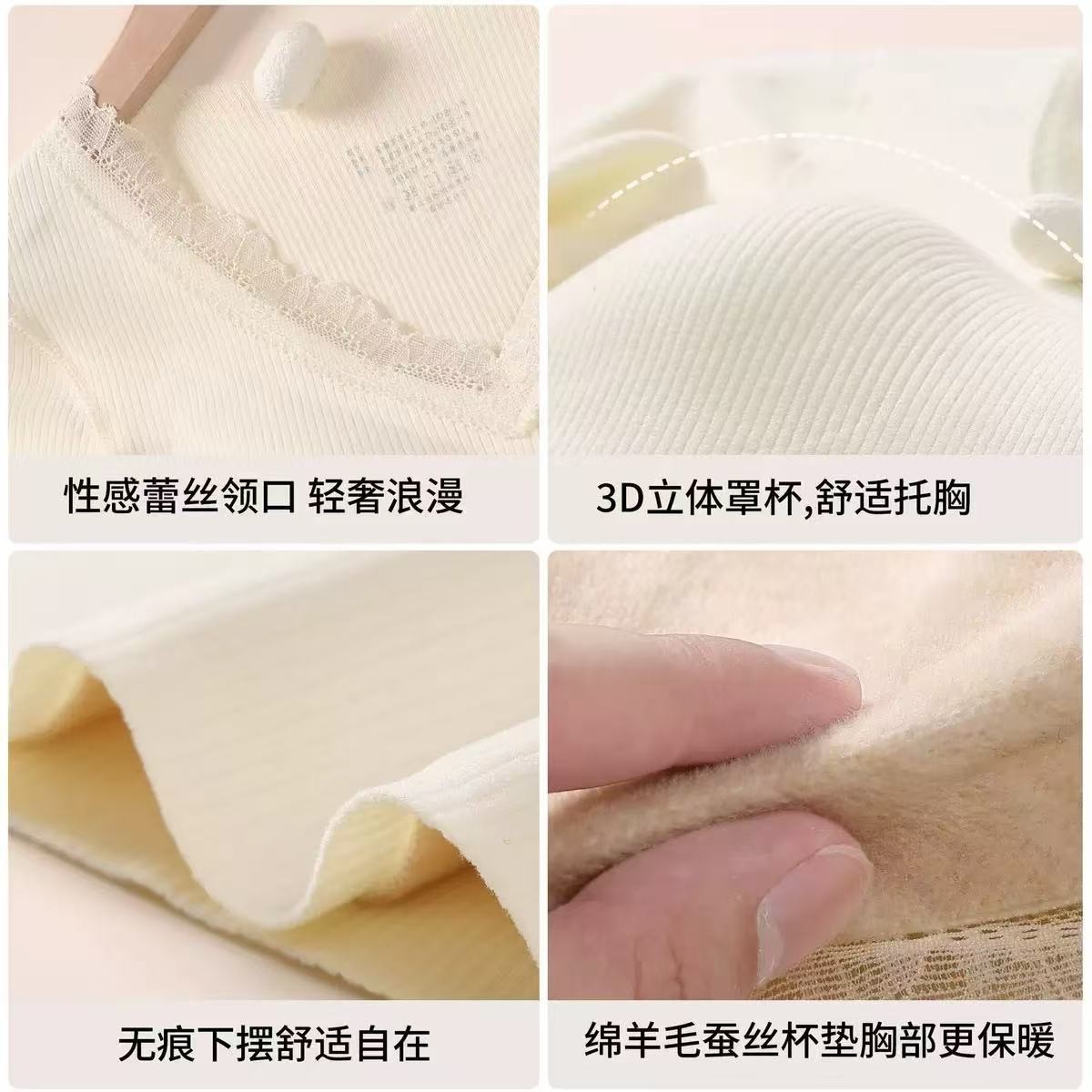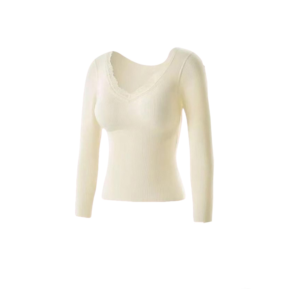 秋冬保暖内衣免文胸带胸垫无痕舒适修身显瘦白搭打底蕾丝V领秋衣