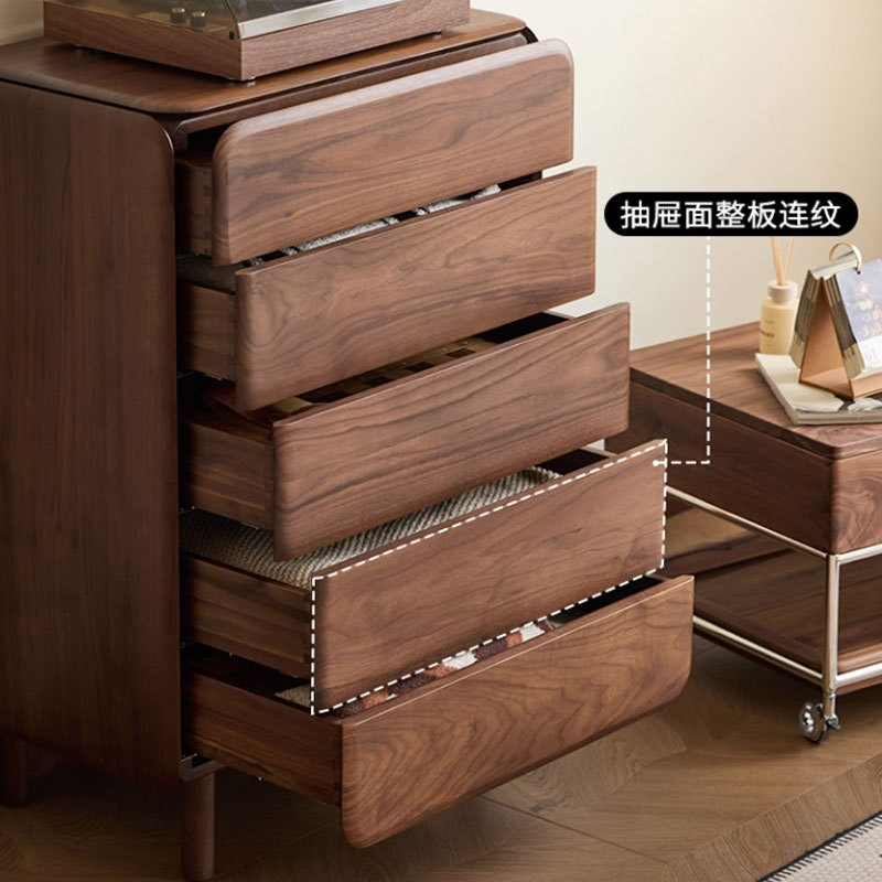 北美黑胡桃木五斗柜现代简约梳妆柜北欧实木樱桃木卧室收纳储物柜