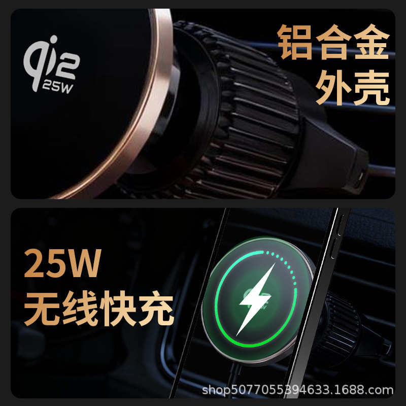 25W车载手机支架磁吸无线充适用iphone17/16/15magsafe磁力无线充