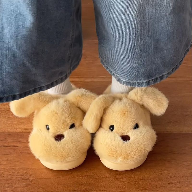 呆萌毛绒垂耳小狗包头鞋冬季居家保暖室内舒适轻便情侣款棉鞋订货