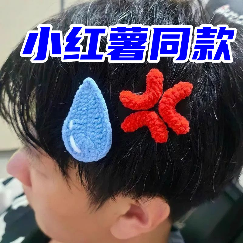 生气款头饰鸭搞怪发饰侧边愤怒水滴钩织毛线创意夹一字夹发夹包邮
