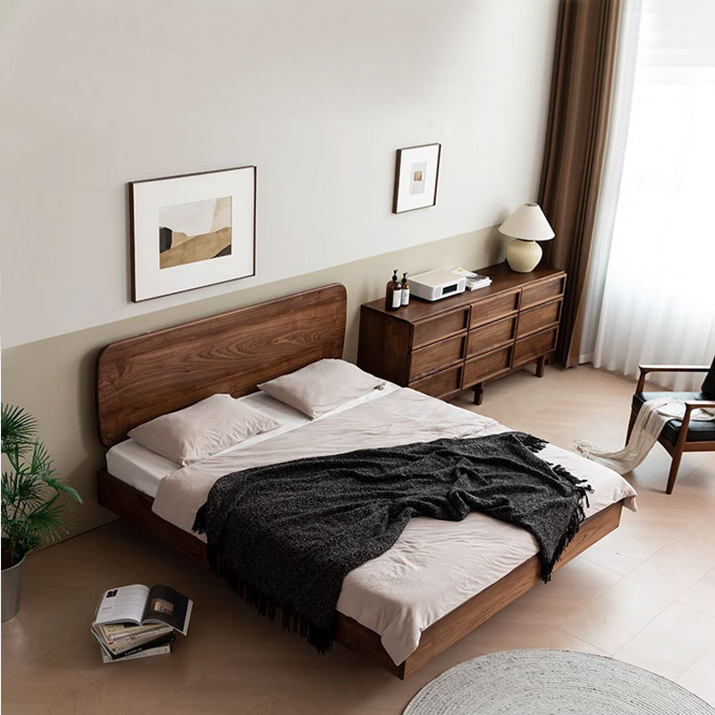 北美黑胡桃木床实木悬浮床北欧主卧现代双人床1.5米1.8米高靠背床