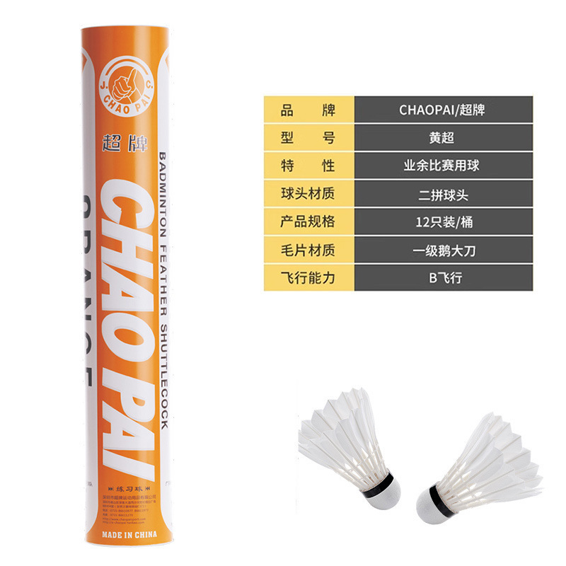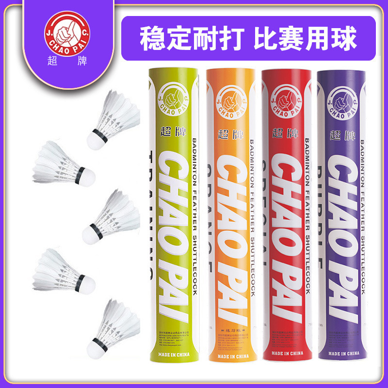 超牌羽毛球红超粉超绿超黄超比赛用球鹅毛球耐训练比赛球稳定软木