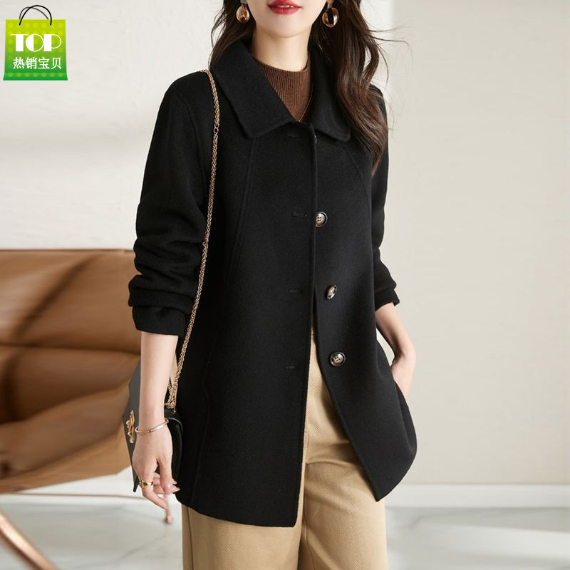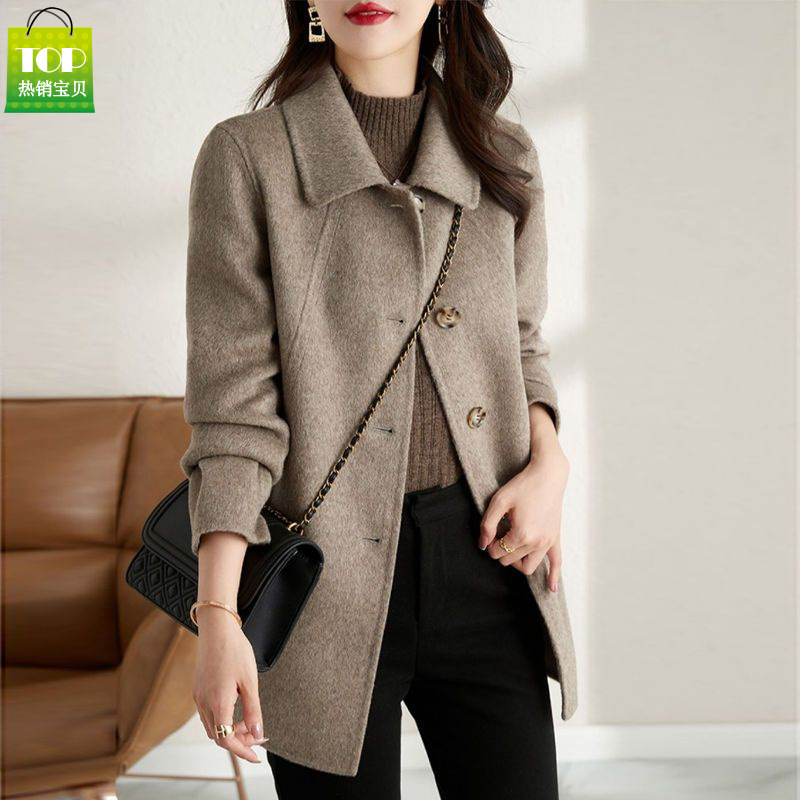 龙凤尼350克秋冬新款大衣中长款修身显瘦娃娃领小个子毛呢外套女
