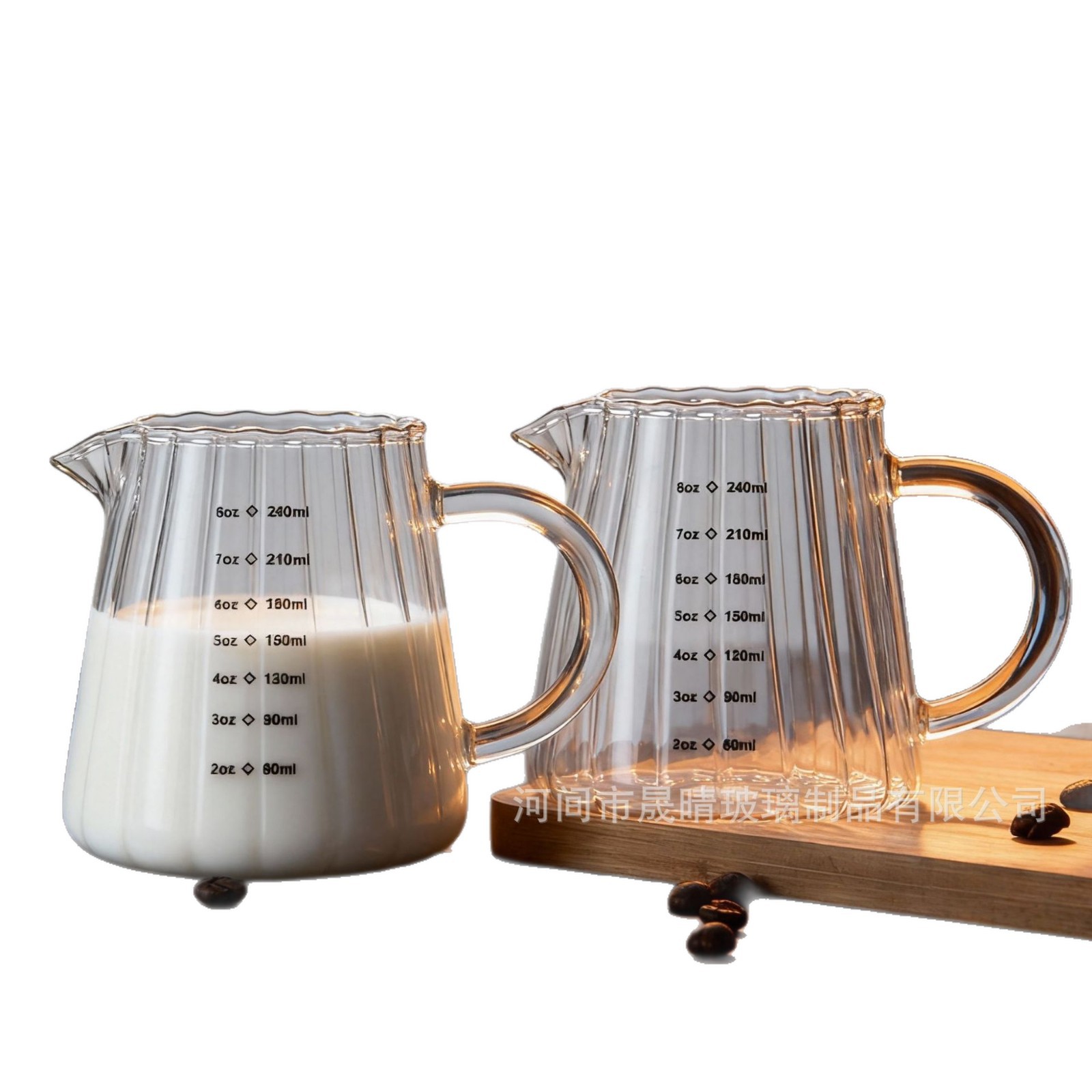 新款小奶壶加奶容器竖纹玻璃小奶盅条纹调料酱汁杯西餐复古小奶罐