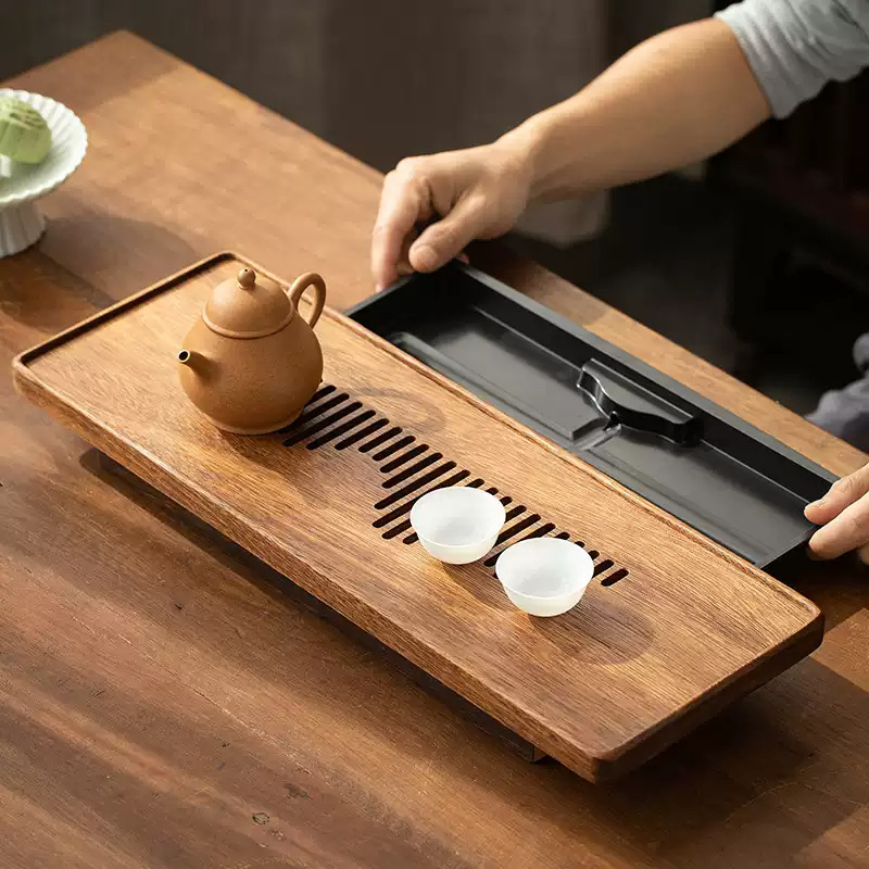 胡桃木新中式家用茶盘干泡盘抽屉式小型干泡台实木壶承茶几小茶具